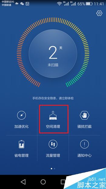 第二步进去之后,选择“空间清理”,也可以先进行一下手机体检