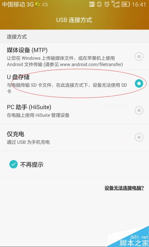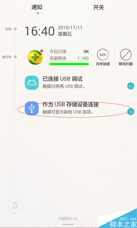 用数据线链接手机,会弹出一个usb接口的信息,如图所示进行一个选择
