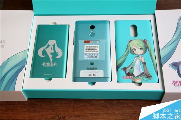 除了红米Note 4X外,套装还包含赠刻有初音未来的手机壳和小米10000mAh移动电源,也均采用全绿色设计,与手机搭配相得益彰。