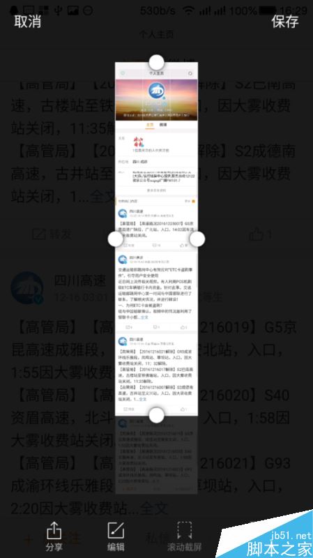 这时即完成了长截图的生成,同时也能通过拖动四边的小圆形图标达到调整截图大小的目的;