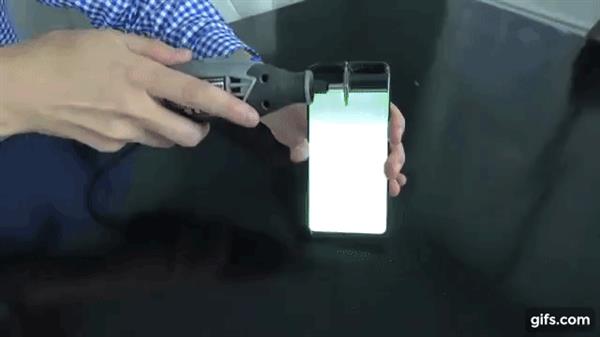 先是用吸盘试图拉开手机,但没有成功。后来用电吹风对手机进行加热,希望软化内部的胶水,结果依然没有成功拉开。看来手机组装得严丝合缝,密封性比较好。