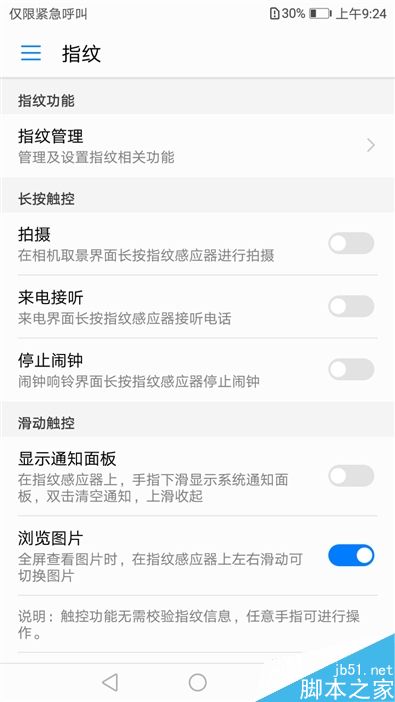 ↑↑↑华为畅享7 Plus支持许多指纹功能,比如指纹拍照、来电接听、停止闹钟、查看通知等等,非常齐全