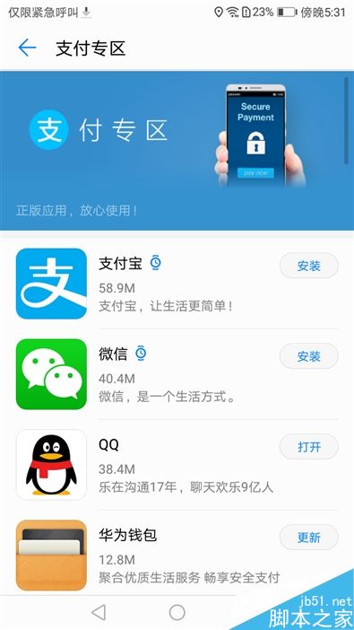 ↑↑↑华为畅享7 Plus也有专门的支付应用下载专区,更加安全