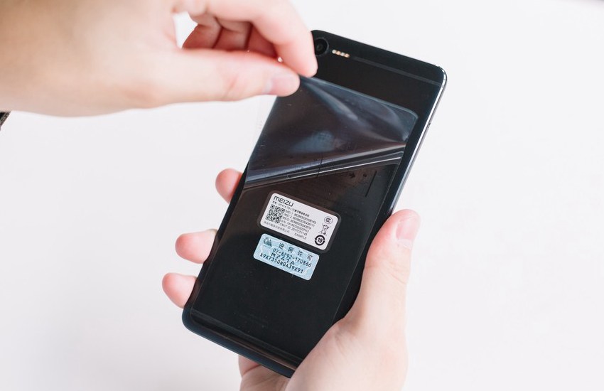 打开包装盒,就可以简单魅蓝E2曜石黑真机了,正面也是纯黑色,熄屏效果不错。