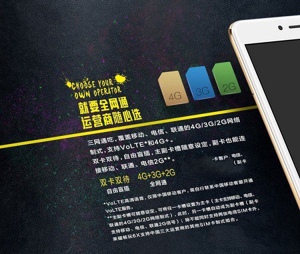 双卡双待下,主卡支持三大运营商任意4G/3G/2G,双卡可盲插,自由切换为主卡,同时副卡支持CDMA/GSM/WCDMA语音,并支持Volte高清语音通话功能。