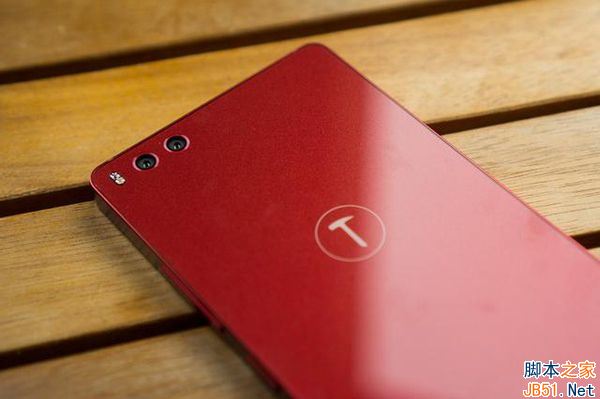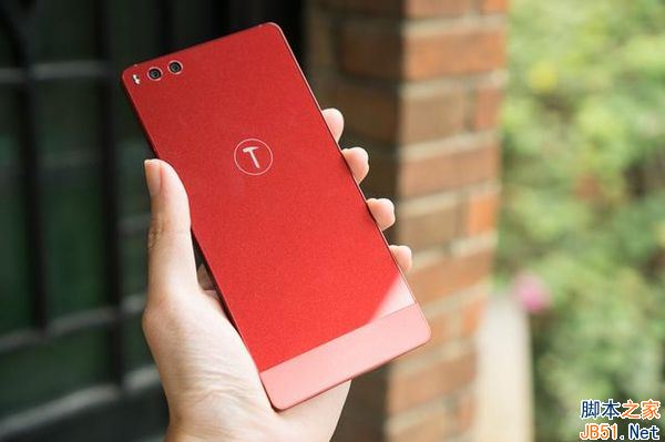 背部左上角则是放置了双色LED闪光灯以及1300万像素双摄像头。锤子的浮刻LOGO则放在了机身中部。
