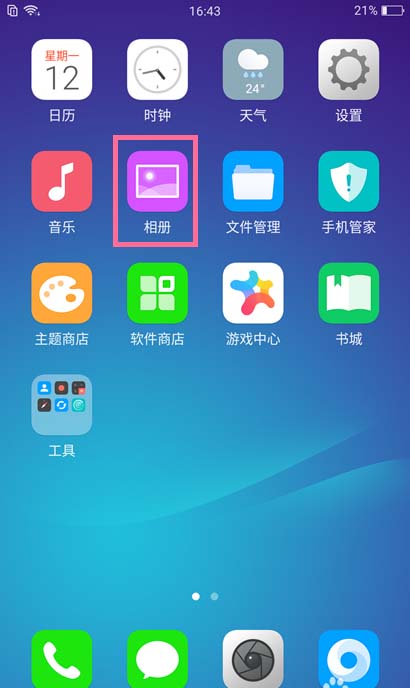 1、通过桌面的相册进入。