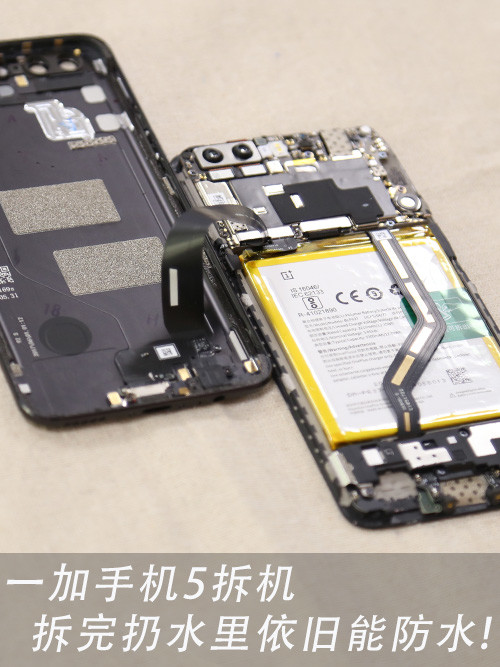 经过测试这部一加5依旧能够防水!这是小编也没有想想到的,这做工真是没谁了,试问有哪些手机在拆解完又安装好后依旧能防水的!