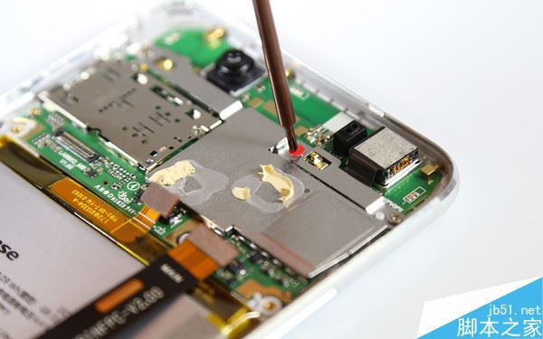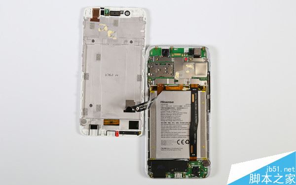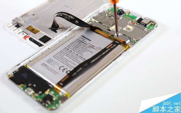 拆卸到这里基本上就算是拆完了,不过电池还在后盖上,用热风枪稍稍一加热就能将电池取下,还是比较容易的。海信H10的电池容量为3400mAh,整体上的续航还是十分给力的。