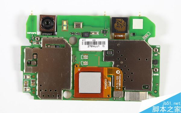 之后我们就能顺利的将主板取下来了,主板上除了前后镜头外没有什么可以在拆卸的元器件了,主板背面有指纹识别,指纹识别组件和主板通过排线连接,而指纹识别组件则被固定在主板上,不可拆卸。