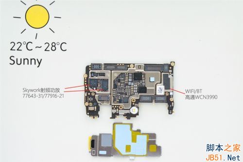 主板的正面是射频功放,细心的小伙伴或许注意到了,拆下来的金属屏蔽罩上都有硅胶片,让热量通过金属屏蔽罩更快传导出去。