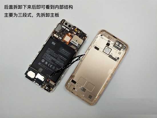 以上就是小米5X后盖打开方法,如果要进一步全面拆机,只要将手机断电,然后依次拆下主板上的所有螺丝,拆下主摄像头、前置摄像头、指纹识别模块等元件,最后再拆底部小板即可。