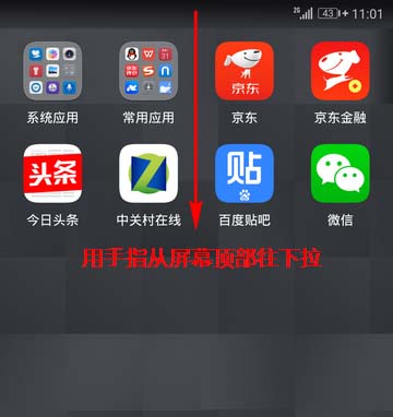 1、首先,在手机桌面用手指从屏幕顶部往下拉。