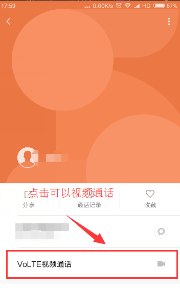 8、进入打电话,点击你想与谁视频通话的联系人,点击右边,在这界面,你会看到出现了“VoL TE视频通话”,点击就可以视频通话