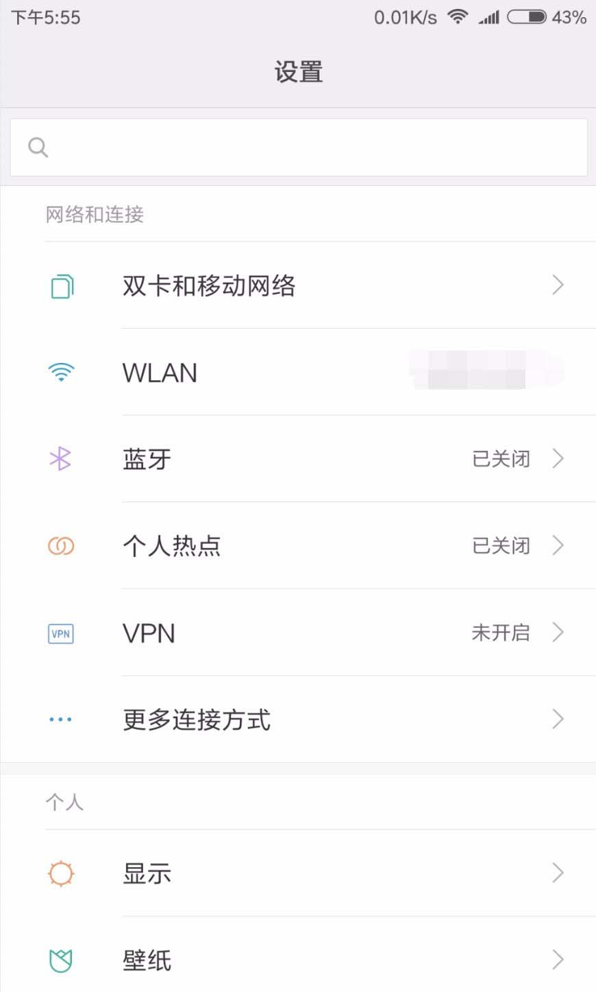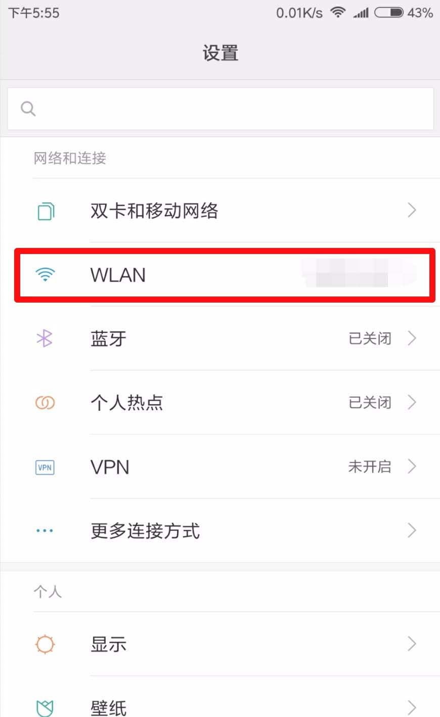 2、接着点击设置中的wlan,进入wifi界面。