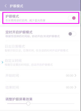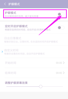 5、开启后,护眼模式旁边的按钮就变亮了,而且屏幕的颜色也发生了改变。