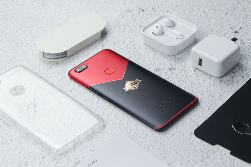 包装包括一部定制主机,数据线、充电器、耳机以及手机壳。vivo X20王者荣耀周年庆限量版为红黑撞色设计,V形的衔接极具视觉冲击力。