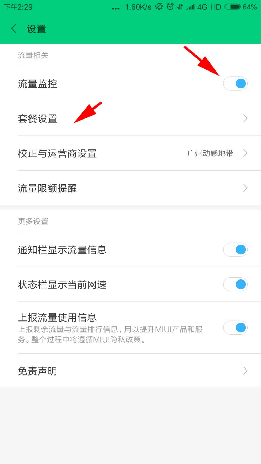 4、打开流量监控,点击套餐设置