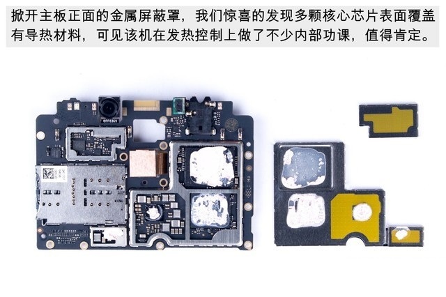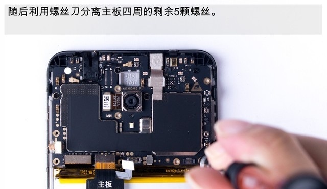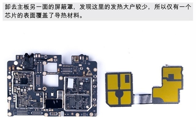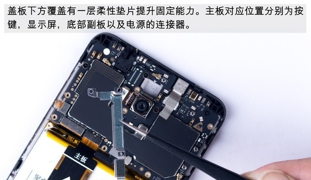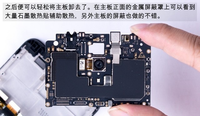 之后就可以轻松取下核心主板了,之后主板上的摄像头、屏蔽罩等都可以轻松分离,如下组图所示。