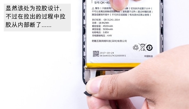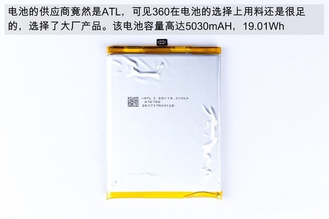 最后就剩下拆360N6内部电池了。该机内置了5030mAh超大容量电池,并且是出自大厂,这点无疑值得点赞,续航有保障。