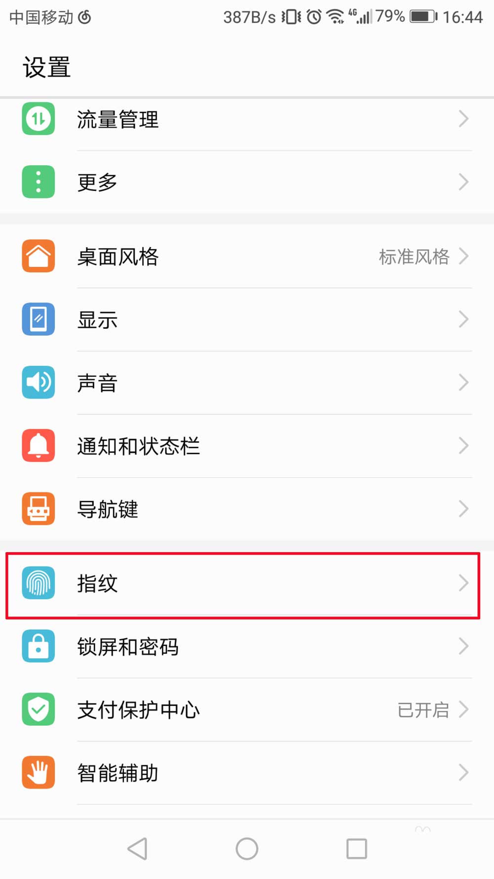 4、进入设置之后,点击“指纹”。