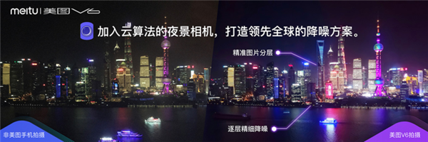 答案当然是算法,为了实现最佳的夜景降噪,美图 V6 甚至把夜景图片的处理过程搬到了云端: