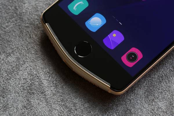美图 V6 采用的是前置指纹识别,左边为多任务键,右边为返回键,