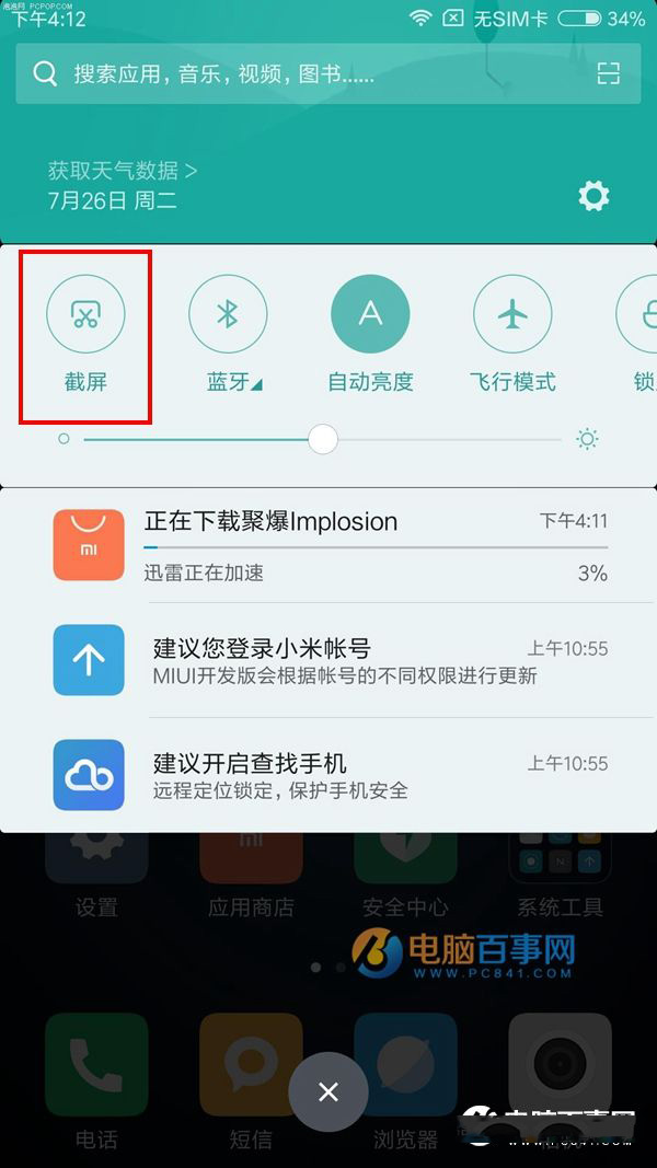 ②红米5 Plus截图方法二:下拉菜单