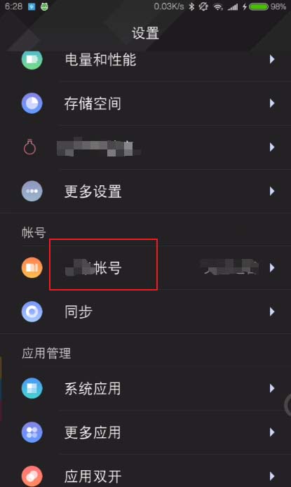 1、进入手机→设置→帐号。