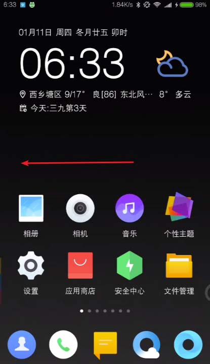 1、在图一主屏幕滑动手机屏幕,在图二点击红色长方体的位置。