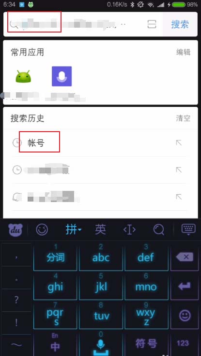 2、在搜索栏输入帐号进行搜索,搜到设置后点击底部的帐号。