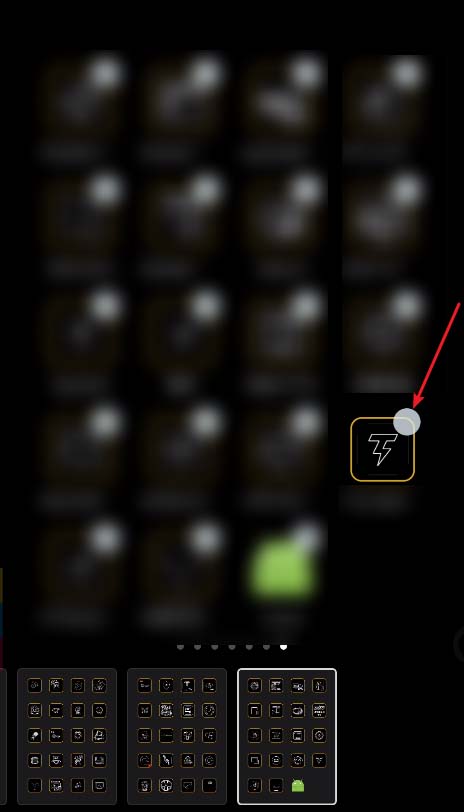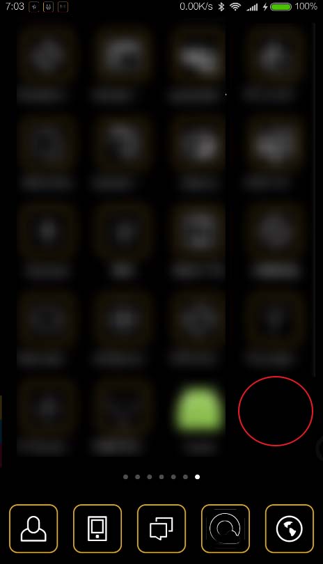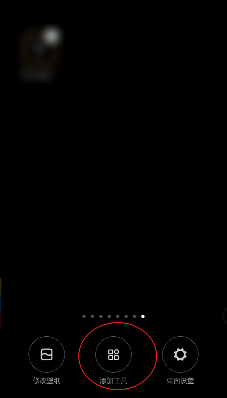 1、在桌面没有APP的地方按住不松手,然后随便点击一个APP上面的小圆点。