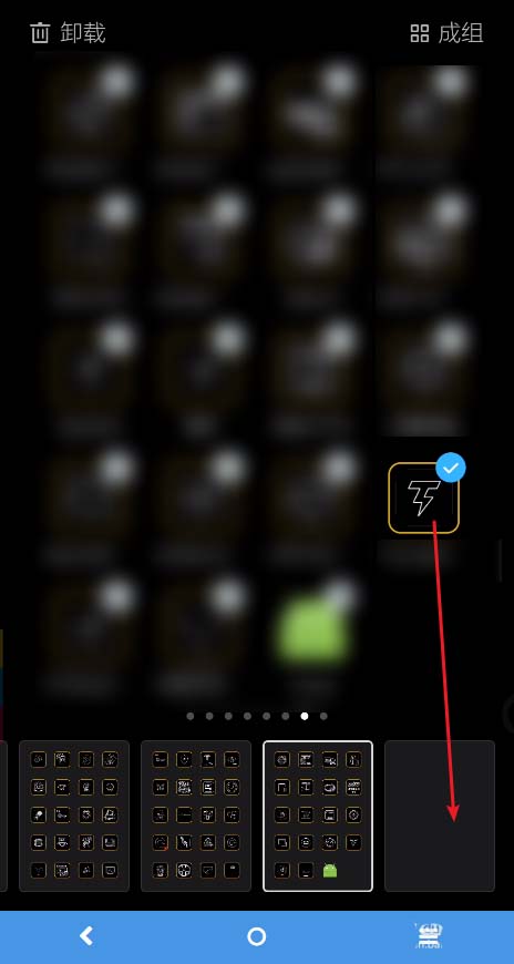 4、接着图标添加到了屏幕上面,这个时候点击一下顶部多余的图标往屏幕上面拖动,然后选择卸载。