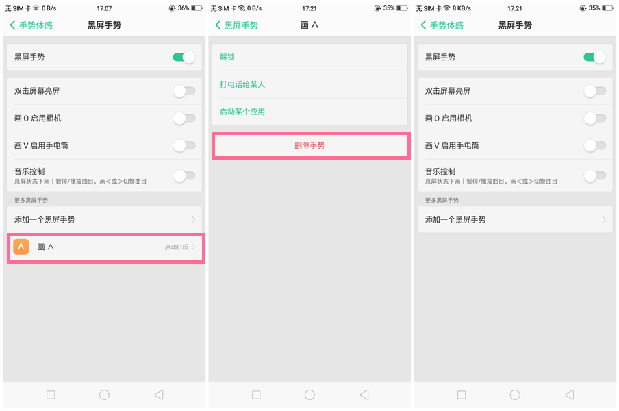 1、、如果想取消设置的手势,可以点击设置好的手势进入--删除手势即可。后续想使用再添加就好啦~