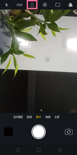 2、切换到前置摄像头,会出现以下界面,点击那个水滴图标。
