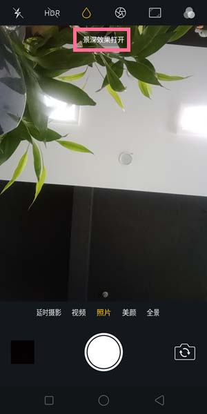 3、开启景深效果(水滴变成黄色),就可以进行相关拍照了。