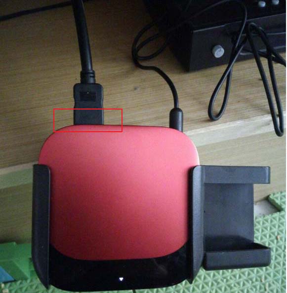 2、先把视频hdmi线跟电视机盒子上面的接口相连接,然后插入盒子电源,打开盒子,打开电视机调出图像。