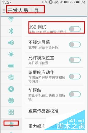 6.对于部分早期版本的Flyme系统,可能系统没有自带ROOT权限管理功能,对此我们先开启魅族手机“USB调试”开关。