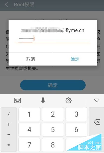 4.此时弹出如图所示的“身份验证”界面,输入Flyme账户和密码完成身份验证及确认开启ROOT权限操作。