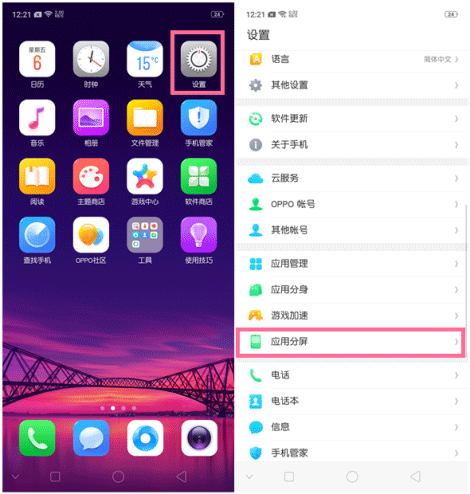 1、通过桌面的【设置】--找到【应用分屏】。