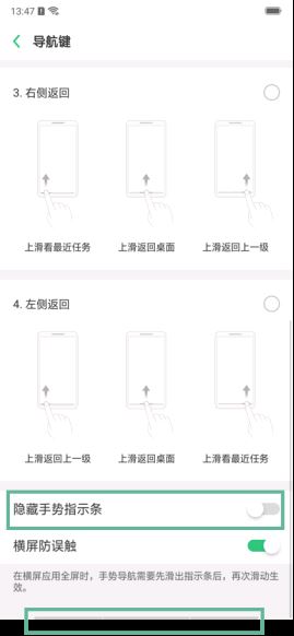 3、进行了相关设置后,可以清晰的看到手机底部有相应的指示条显示。