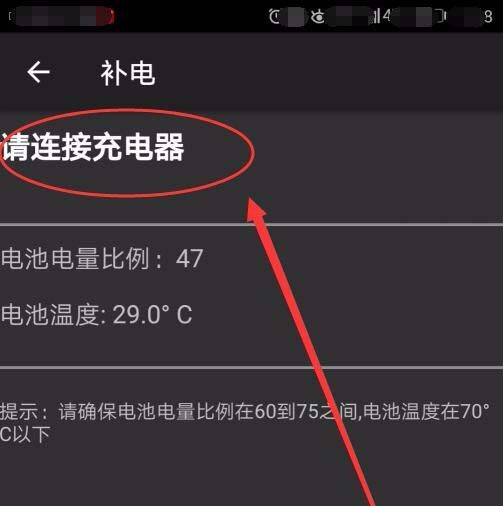 9、点击补电选项,连接充电器后,可以对手机进行补电。
