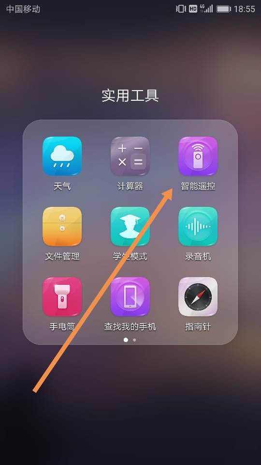 1、在我们的手机桌面上找到 实用工具 这个选项,这个里面默认有很多小工具,因此我们需要点击进入找到我们想要的工具,点开找到 智能遥控 点击进入,如图所示~