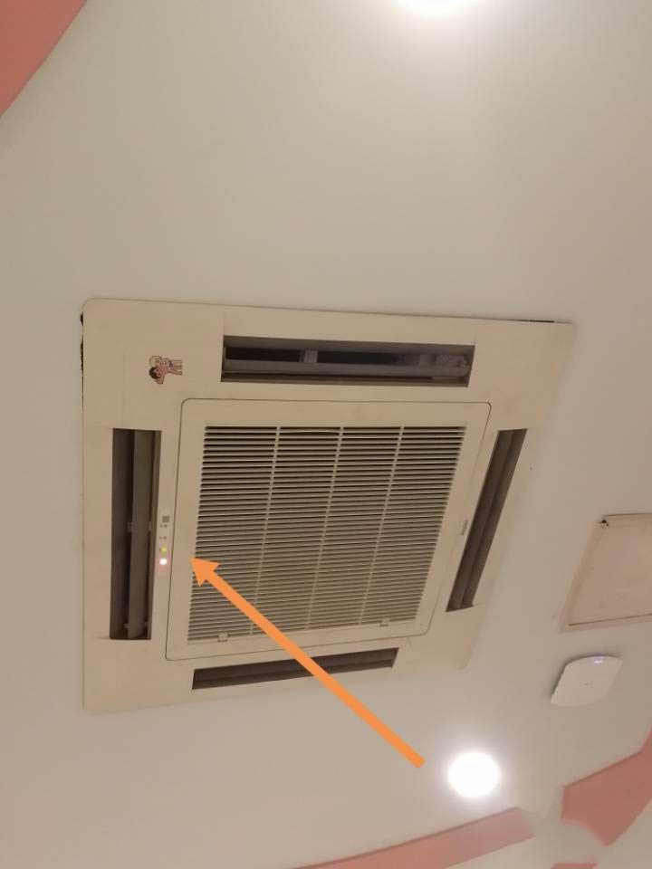 5、经过以上几步的操作,我们的空调终于被我们启动打开,出现了绿色的电源信号灯,如图所示~