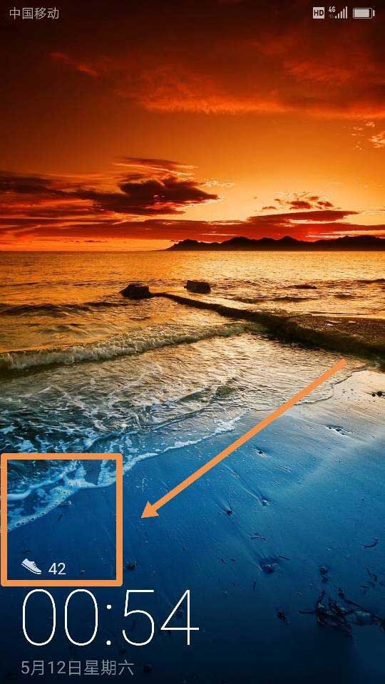 5、我们再次回到我们手机的锁屏界面的时候,我们就会很明显地看到,我们需要的步数显示功能已经出现在这个锁屏壁纸上了,如图所示~