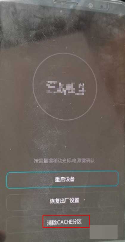 2、要恢复手机出厂设置,先按音量键-,选择图一的缓存分区,选择后按电源键确认格式化,等待它百分百。