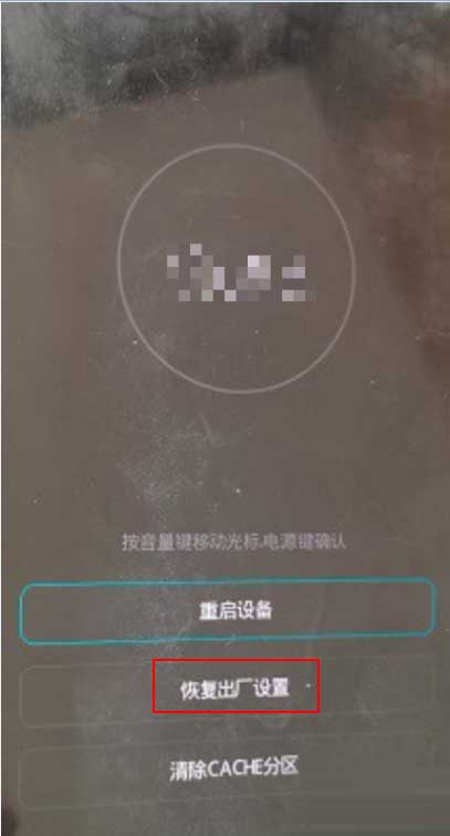 3、接着,按音量键下选择恢复出厂设置。
