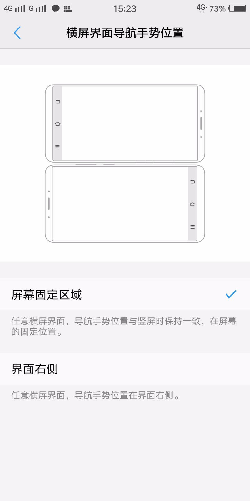 4、同时,也可以设置横屏后的导航键所处位置,固定在左侧或者右侧。