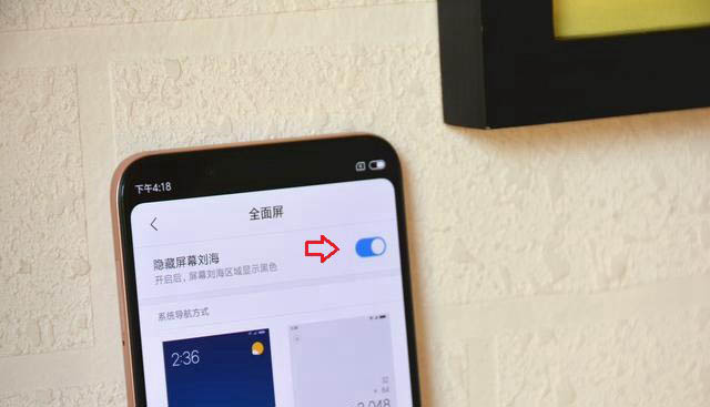 2、在全面屏设置最上部,就可以看到有“隐藏屏幕刘海”开关,点击右侧的“开关”。开启隐藏屏幕刘海开关后,小米8的刘海就可以比较完美的隐藏了,以下是隐藏后的效果,是不是就没强迫症了。