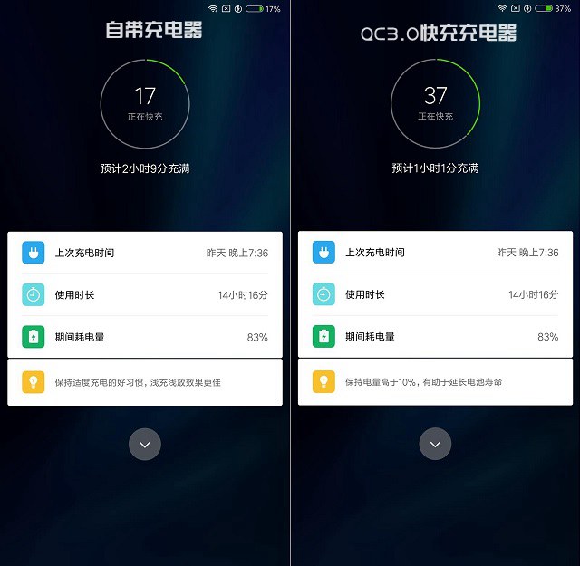 小米6X自带充电与快充速度对比
